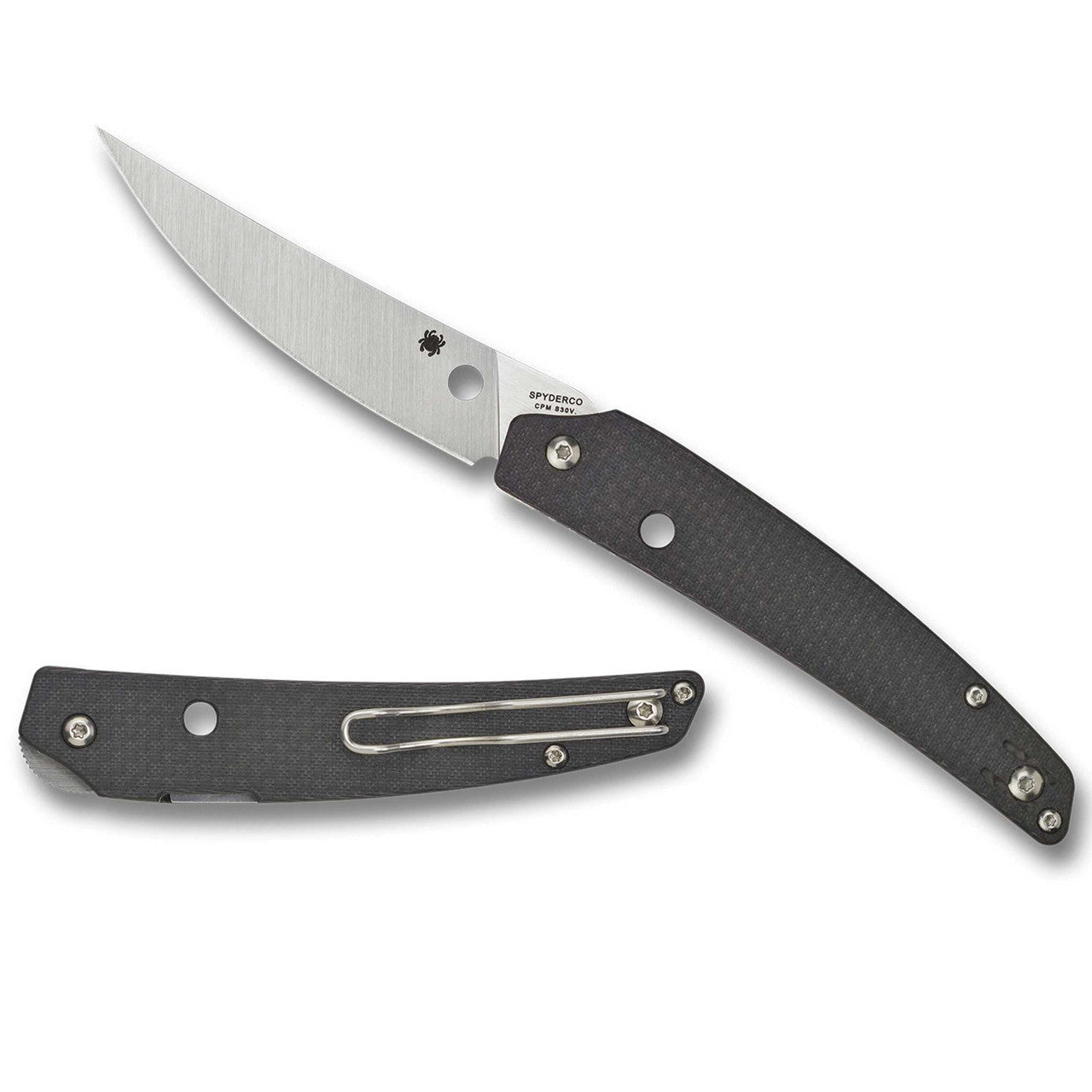 The ultra-slim Spyderco Ikuchi is a radically different approach to pocketknife form and function. Designed by Paul Alexander, a Ph.D. in Mechanical Engineering and a lifelong knife enthusiast, the Ikuchi (pronounced ee-koo-chee and named after a mythical Japanese sea monster) has an elegantly curved handle crafted with full, skeletonized stainless steel liners and stunning carbon fiber/G-10 laminate scales.